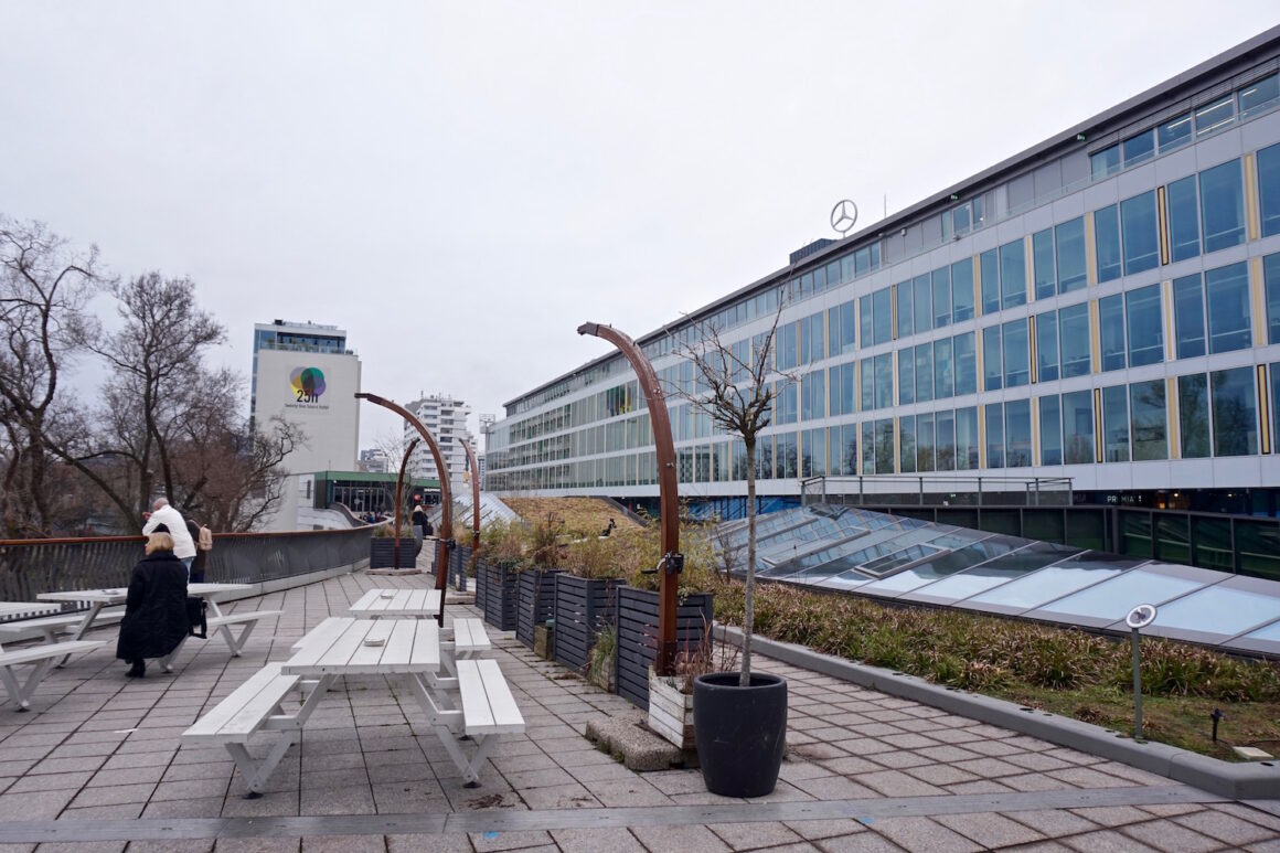 An additional highlight of the Bikini Berlin is its freely accessible rooftop terrace – resembling New York’s Highline Park and Paris’ Coulée verte René-Dumont. It also offers spectacular views onto the neighboring Zoo.
