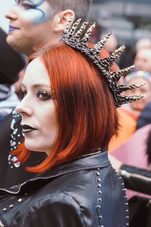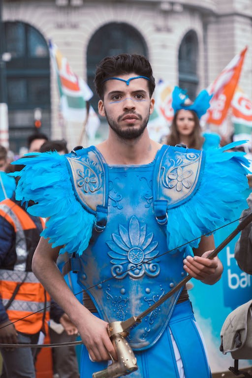 After a glamourous performance by the French drag queen Leona Winter and a dance recital by Trinxx (on high heels) the parade hit the road. This year no less than 70 contingents from all over Belgium joined the exuberant and colourful procession through the centre of Brussels. The festively decorated parade wagons, provided with music and flying rainbow flags, took off in the Ravensteinstraat at 14:30.