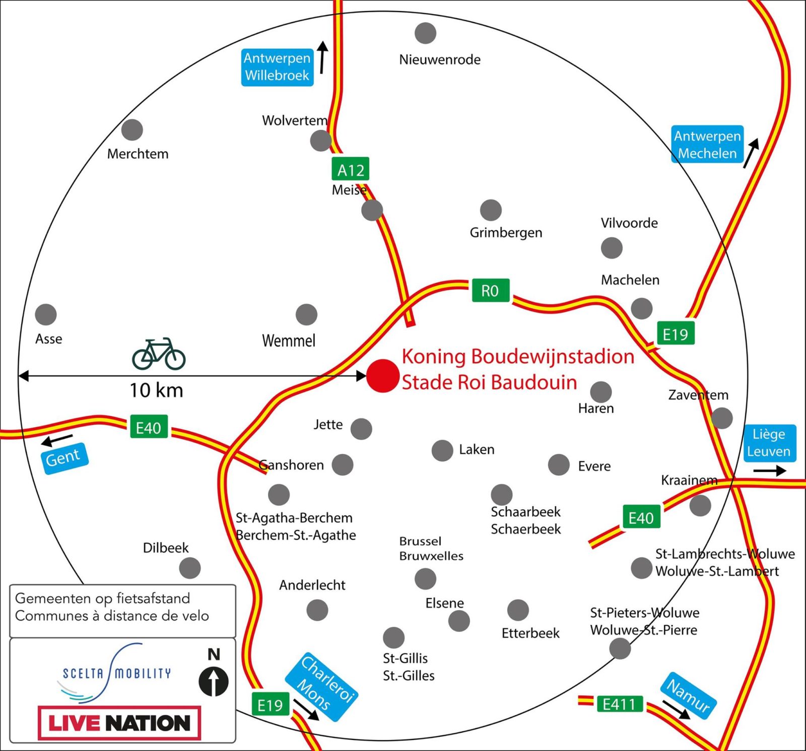 Also handy: you can use the Villo shared bicycles in Brussels. A day pass costs 1.60 euros. There are four Villo stations around the King Baudouin Stadium: Heizel/Heysel, Atomium, Stadion/Stade and Houba-Brugmann. You can find more information about Villo at en.villo.be.