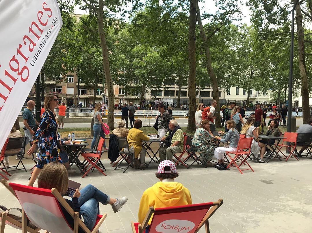Isn’t it beautiful when people take over and enjoy on the streets of our city? In a recently renovated zone (including new bike path) from Arts-Loi metro to Madou, you could see a lovely view this past weekend. People have gathered on a sunny terrace, some for the reason of the passing Tour de France, some for a simple reason of getting some Sun rays and reading a book. In case you missed to enjoy yourself, Librairie Filigranes has a new terrace and they published several photos on their Instagram account, sharing the atmosphere in front of their establishment.
