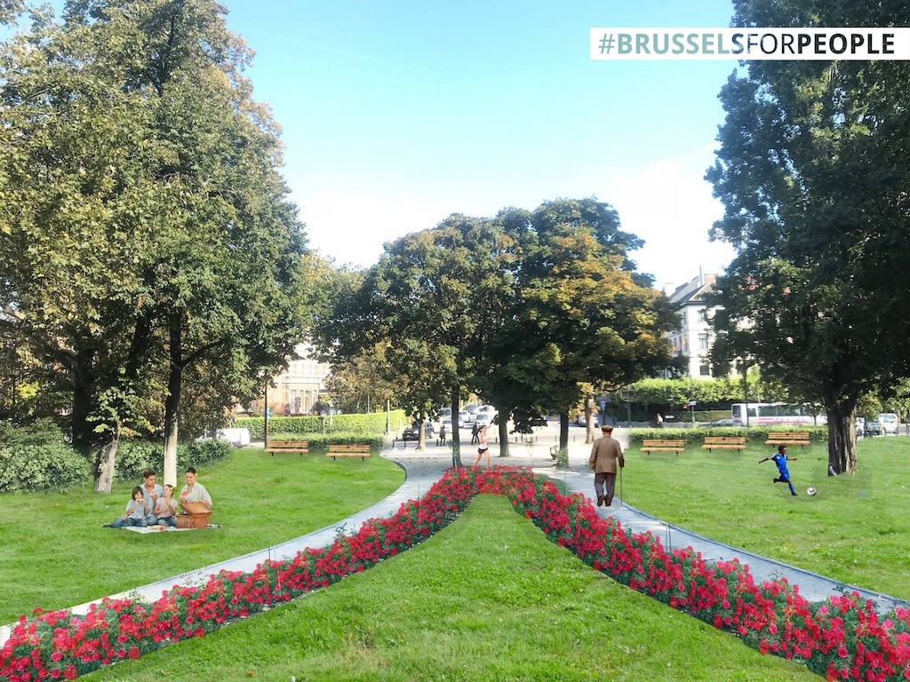 “For traffic safety in the neighbourhood, it is a good thing that the speed limit goes down. However, this does not solve the structural shortage of open green spaces in this densely populated area. At the slightest ray of sunshine, the banks of the Ixelles ponds are very crowded. People from the neighbourhood are gasping for a refreshing breath. By making some small interventions, one large green axis between Place Flagey and Bois de la Cambre can be formed. The locals will be able to relax and cyclists and pedestrians will be able to cross the city without having to worry about traffic.”