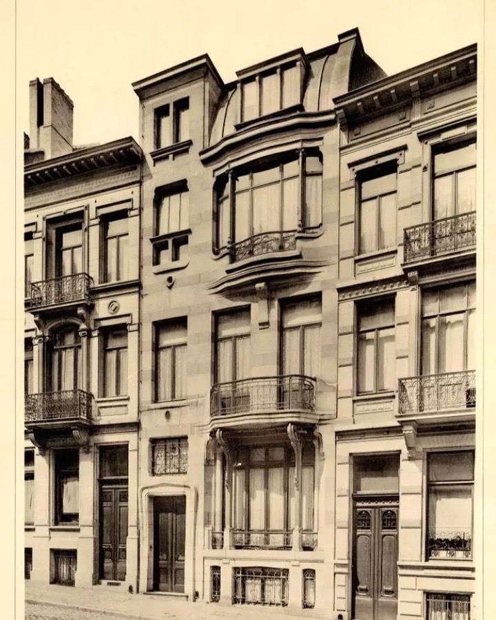 After designing Maison Autrique and Hôtel Tassel, the career of the merely 23-year-old architect takes off. Maurice Frison, famous lawyer of the court of Belgium asks Horta in 1894 to design a building for him that would serve as his office and home as well. The concept of such a “double function” was rather modern at the time. The building is an intricate scheme of levels adding up to a total of 8 floors from the ground floor hosting the servants’ quarters up to the attic where the curved roof has a large window, thus is also inhabitable. A rather dominant element of the structure is the main staircase taking almost half of the width of the building. In his Mémoires Horta writes about the house: “the design, including the expense incurred, was to everyone’s satisfaction, including that of the client’s fiancée”.