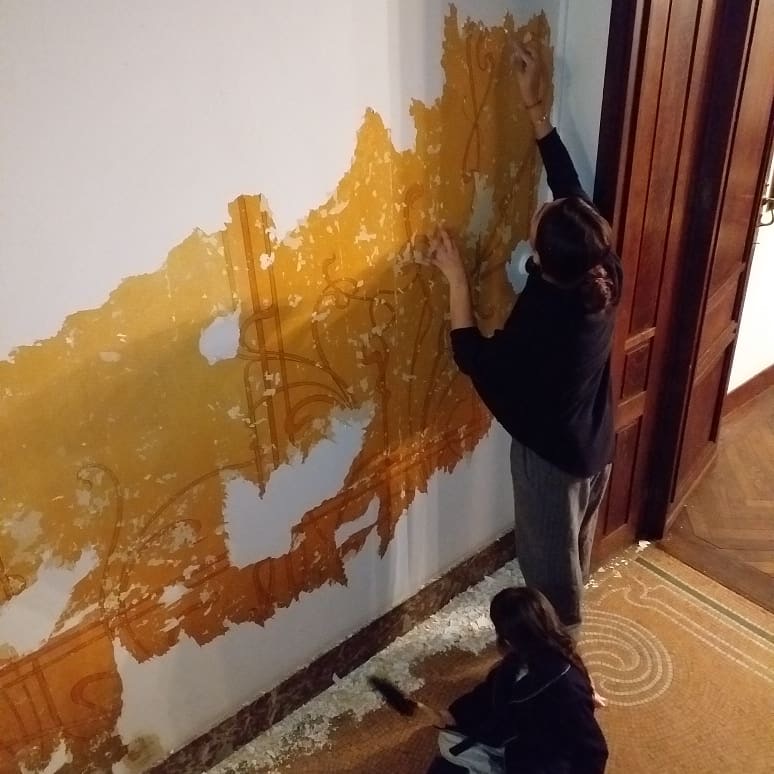 In the caves original fine furniture by Victor Horta, Henry van de Velde, Gustave Serrurier-Bovy, Gustave Strauven were piled up. It was the very last minute to save and restore them, and to place them back in the different rooms of the house where the visitor can admire these art nouveau gems. Besides the furniture, the walls also hold secret treasures. Under 12 layers of plain paint, Victor Horta’s original frescoes lay. As it turns out, Nupur Tron spent most of her time during the COVID lockdown stripping the walls and uncovering the frescoes depicting tendrils and natural curves – so typical to the work of Victor Horta. During the last three years she also renewed the garden. With the guidance of Francios Aubry, former curator of the Horta Museum and great expert of art nouveau, plants typical to art nouveau period were planted.