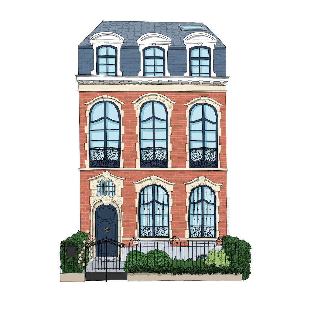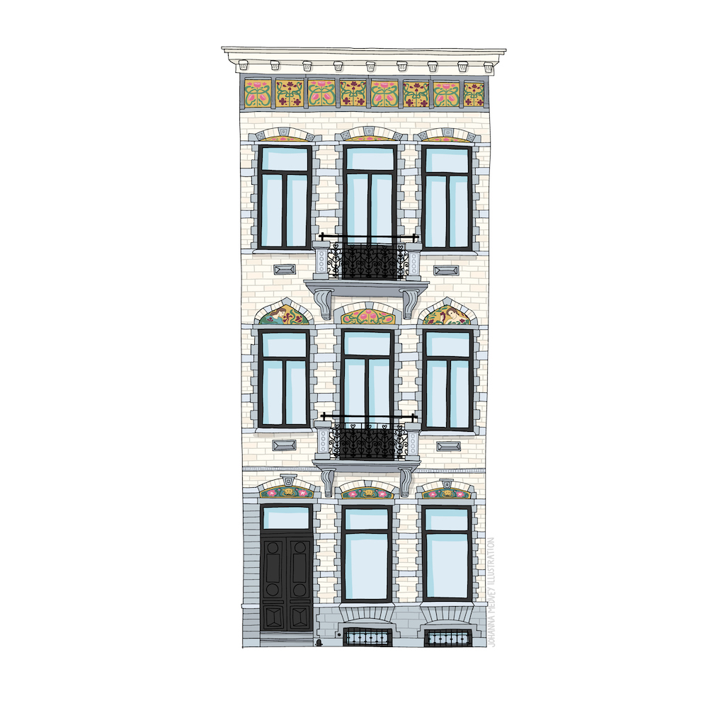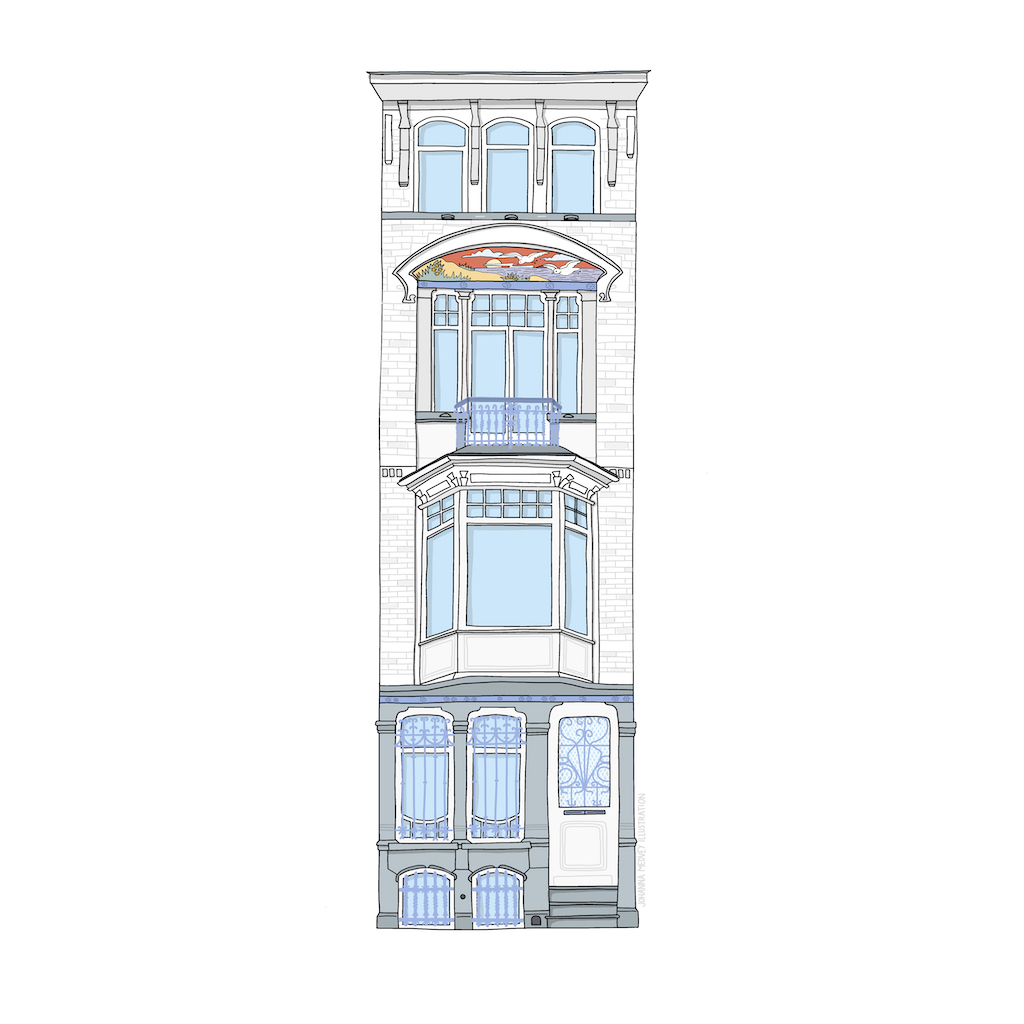 It would be hard to choose one ! I love cycling around the city and finding new facades that make my heart sing, usually turn-of-the-century gems with their unique details. I have to admit that I like the anonymous ones even more than the famous, widely admired houses. I have a folder on my computer full of photos of “houses to draw”. If I ever stop having client work, I can rely on this collection to keep myself busy for a very long time.