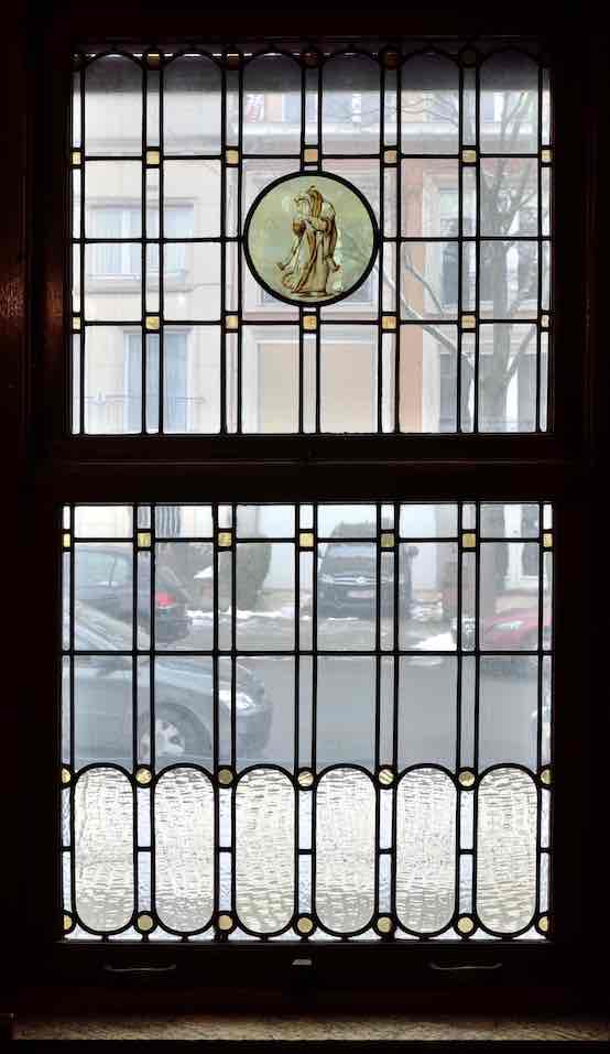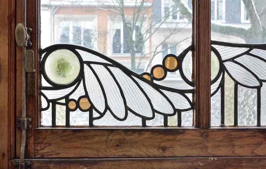 The house in particular is unique for its bow window with its Art Nouveau layout and for its skylight window that lit up the artist’s studio. The master glazier’s influence is clearly visible on the facade and in the arrangement of the rooms. For example, there is a strong presence of ornamented glazing and a remarkable positioning of the skylight window that illuminates the artist’s studio. Indeed, this house has “hybrid” characteristics, with both Art Nouveau, already out of fashion at the time, and Art Deco, which on the contrary was in vogue.