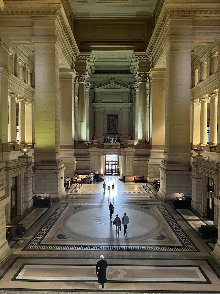With a total net surface of approximately 80,000 m², the Law Courts of Brussels is one of the largest courthouses in the world and defines the skyline of our capital. The imposing building is a part of our heritage and still manages to impress passers-by. The massive dome of 24,000 tons and 142 meters high is and remains an eye-catcher. The impressive reception area, the Salle des Pas Perdus, is approximately 3,600 m² with a compass rose with sixteen ray marks in the center.