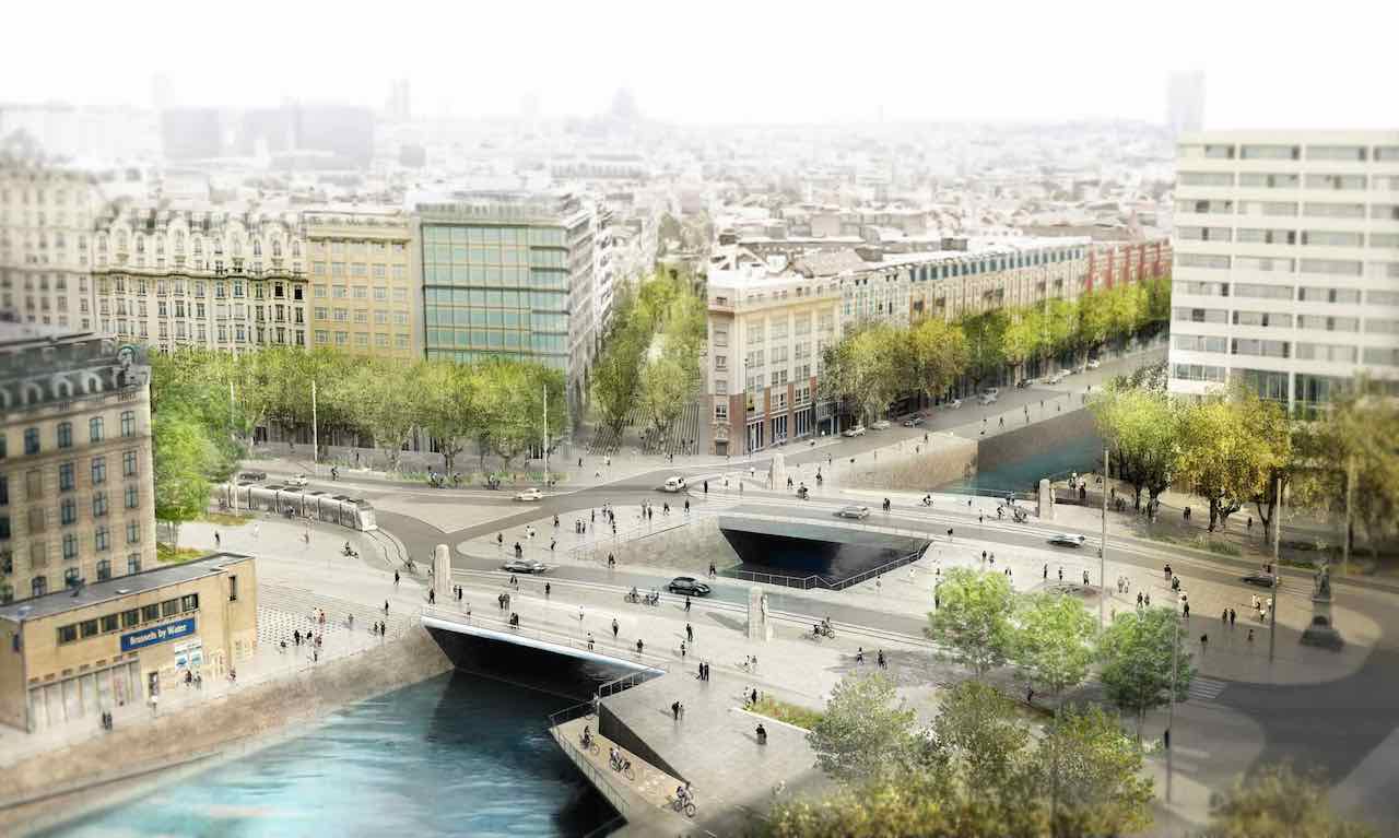 This bridge square aims to break down the border between the West and East of Brussels. The project aims to make the square more fluid and attractive and thus to encourage connections to bring the two sides together.