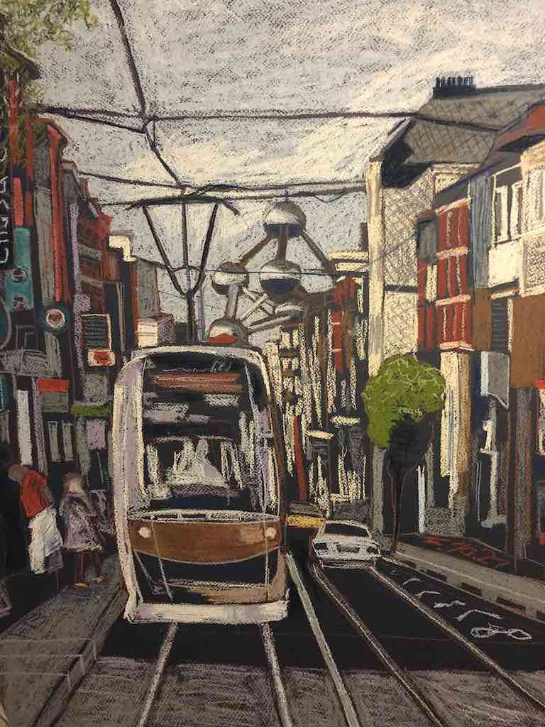 Imagine: the Atomium peered over the city streets of Jette while the tram arrives at its station; A concert evening in the famous jazz club Archiduc in rue Dansaert, or a samba open air concert in a friends’ garden in rue Vauthier; Belgian clouds reflected in the Art Nouveau window of Hotel Hannon in Ixelles; A personal re-created composition of Place Flagey; A lazy Sunday in Bois de la Cambre, with the chalet Robinson in the background. Those are just a few examples of artworks which are part of the art exhibition “my Brussels” (“Bruxelles Emois”) by François Bienfait, a Brussels artist dedicating most of his artistic talent to his hometown. For professional reasons, François lived several years in other European countries – namely the UK, Spain, Malta and Greece. However, the distance has only enhanced his newfound appreciation for the home city. He craved to return to his roots and rediscover the beauty in all the ordinary things he took for granted.