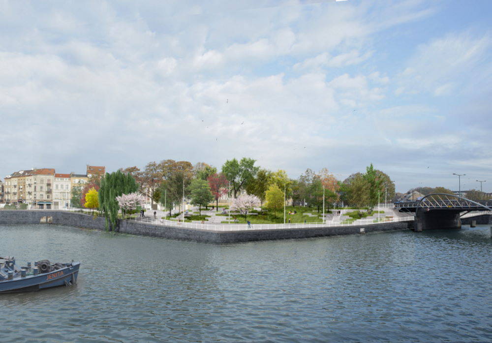The Monument au Travail or Labour Monument dominates the square today and will be integrated and valorised in the new park design. The monument consists of late 19th-century sculptures by Constantin Meunier, integrated into a support designed by architect Mario Knauer in 1930. By lowering the quay, a more direct relationship between the monument and the canal is created. This is a two-way relationship: from the quay on the other side, the monument becomes visible as a focal point in the park, while the monument itself offers a wide view of the Vergotedok. The monument is also taken into account in the vegetation choice and trees with sufficiently high trunks are used to preserve its view.