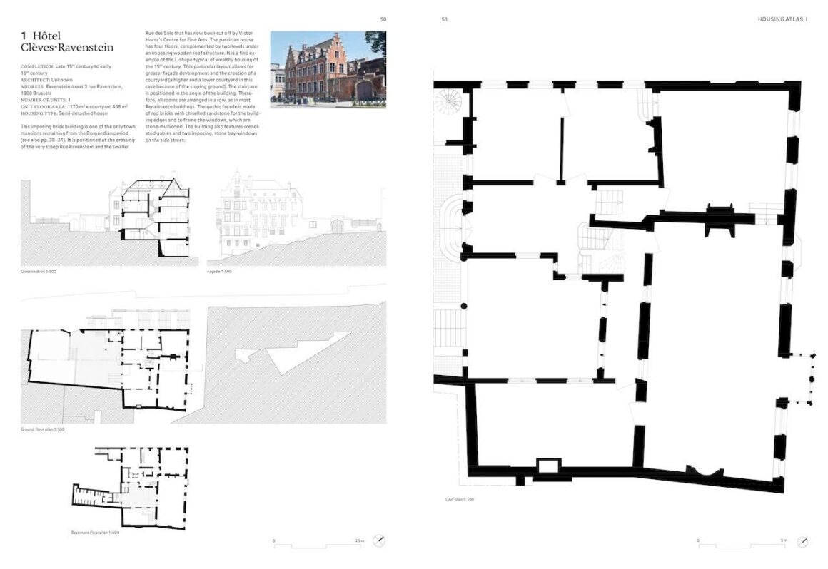 To tell this three-stages story, three mediums have been used: writing, drawing and photography. All three tell, in their own way, the story of housing in Brussels and its domestic and urban qualities. The texts are accompanied by archives. A vast atlas of drawings brings together 108 significant cases. They illustrate the diversity of housing typologies in Brussels from the Middle Ages to the present day. For an easy comparison, they were all redrawn with identical graphic codes and scales. Finally, Maxime Delvaux’s photographs tell a story in their own right: they convey the atmosphere and quality of the urban spaces created by the selected buildings in different districts of Brussels.